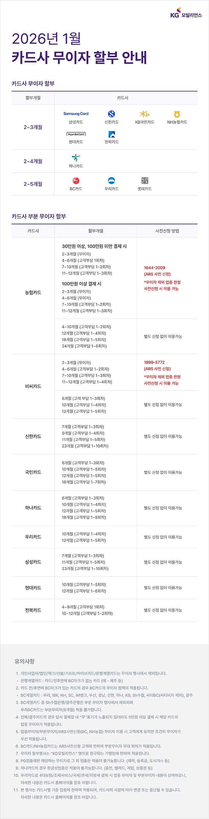 1월 신용카드 무이자 할부 이벤트