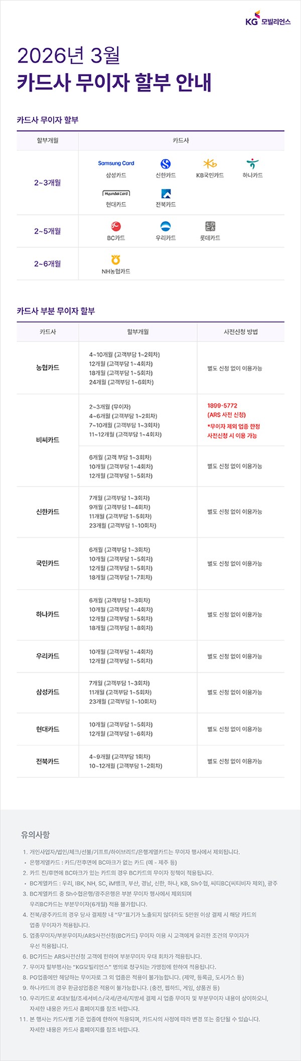 3월 신용카드 무이자 할부 이벤트